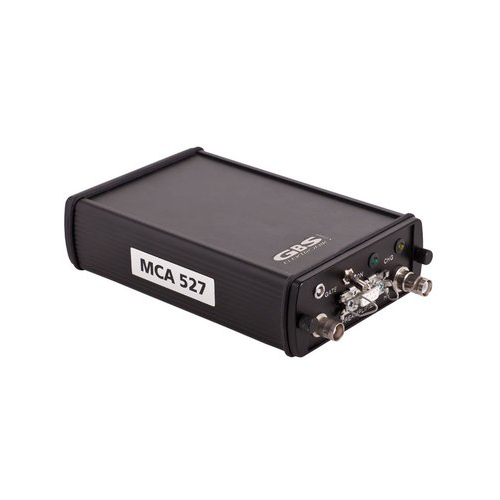 The MCA527 is a battery powered high performance 16K Multi-Channel Analyzer/Multi-Channel Scaler module with the performance of a laboratory grade MCA. High voltage supply for detector and preamplifier power supply are integrated as well as an internal coarse amplifier and digital filtering and analysis. Together with a detector it forms a small-size gamma spectroscopy system, which is well suited to the demands of field measurements for international safeguards, environmental monitoring, nuclear waste treatment facilities, radioactive transport control and similar applications.