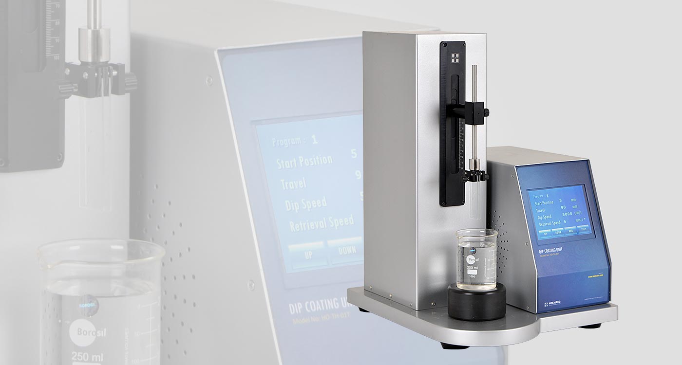 Holmarc’s Dip Coating Unit with Touch screen Interface delivers an optimized performance and smart technology. Model: HO-TH-01T, features 4.5 inch LED touch screen display. A user can easily input or control all the process parameters through simple or multi-touch gestures by touching the screen. The touch screen enables the user to interact directly with what is displayed, rather than using a keypad. Moreover it can be controlled through a computer. All other features are same as that of Model: HO-TH-01.