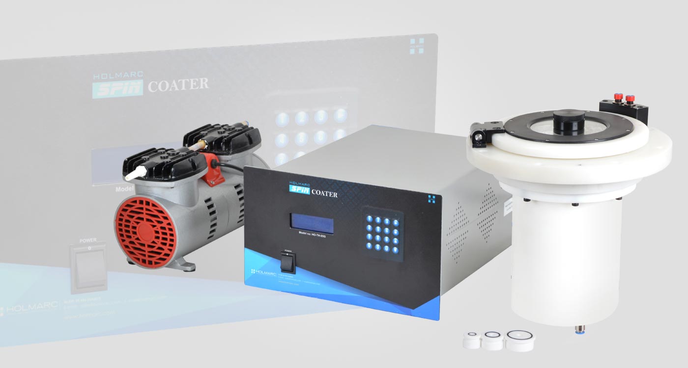 Holmarc’s Spin Coater with glove box compatible, Model no: HO-TH-05G is a dedicated system suitable for use inside glove box to spin coat small substrates in research laboratories with well controlled spin process parameters. This model offers separate controller which has user friendly front panel having keyboard and LCD for programming the spin process. The user can, hence operate the spin coater in the remote location. A two way Start and Stop switches enables spin coater to be turned on or off within glove box or using controller. Spin duration, spin speed, acceleration, etc. are all programmable parameters through the front panel of the controller. The spin head actuator is a precision DC servo motor with accurate speed and acceleration control. A vacuum chuck powered by oil-less vacuum pump holds the substrate at the spinning head. Three sets of nylon anti-corrosive vacuum chucks are provided along with the equipment for holding substrate from 15 x 15 mm square to 100 x 100 mm square.