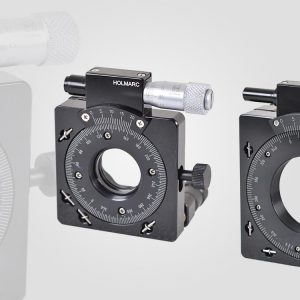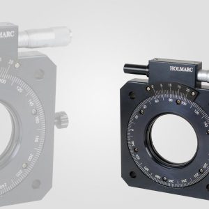This model of polarizer mount has spur gear drive with stepper motor. The polarizer mount is supported on ball bearing for smooth and noiseless positioning. Resolution and repeatability is around 0.5°. Holmarc provides control modules for these devices either with stand alone user interface or with PC control.