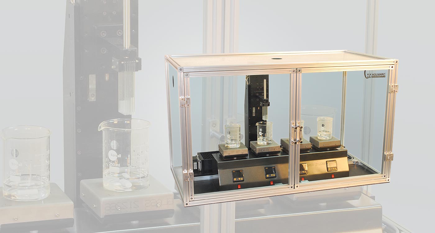 In the Model HO-TH-03B the solution containing beakers are kept on hot plates with magnetic stirrers. The rotation speed of the stirrers can be controlled from 0 – 999 rpm. The dipping speed, dip duration, retrieval speed and dry duration can be set for each beaker. Each hot plate can be set at different temperatures. The temperature can be set up to 200°C from ambient.