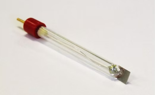 Glass body with gold plated connector pin