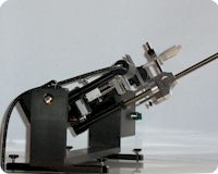 (EN) The microsyringe fixture facilitates rapid and precise formation of pendant and sessile drops. Following placement of a sessile drop, the syringe is easily swung from the field of view. It will return to its exact working location for placement of the subsequent drop. Alternatively, it can remain at the working location, allowing the user to continuously add or withdraw fluid from a sessile drop for the purpose of forming advancing or receding contact angles. This attachment is now included with all ramé-hart goniometer systems but is available as an option for users of our legacy instruments that did not include this accessory. Note that the Microsyringe Fixture supports both the manual Microsyringe Assembly (p/n 100-10-20) as well as any adapter for the Automated Dispensing System (p/n 100-22).